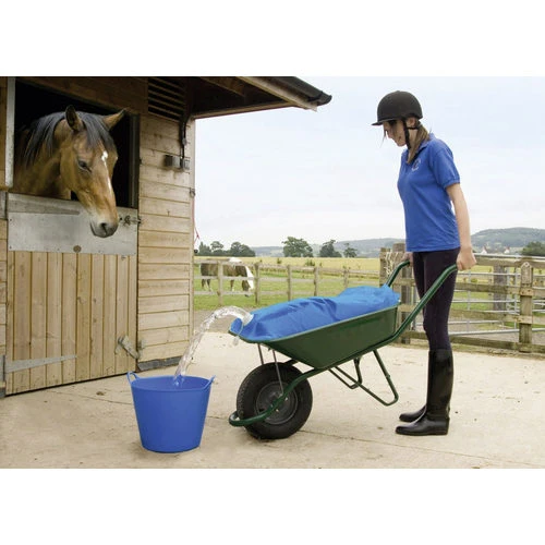 Mit dem AquaTrans Wassersack können Sie leicht bis zu 80 Liter Wasser auf einmal transportieren, beispielsweise zur Tränke Ihres Pferdes. Der Wasserschlauch passt in handelsübliche Schubkarren und ist mit einem Auslauf ausgestattet, der das Umfüllen des Wassers erleichtert.
