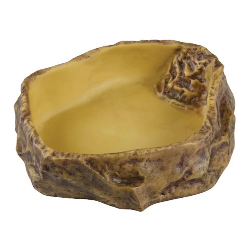 Die Exo Terra Wasserschale im Felsdekor ist eine Wasserschale mit einem natürlichen Aussehen. Die Tränke ist sehr stabil, sodass größere Reptilien diese nicht umwerfen können. Durch die praktischen Stufen können kleinere Tiere leicht und sicher zu dem Wasser kommen.
