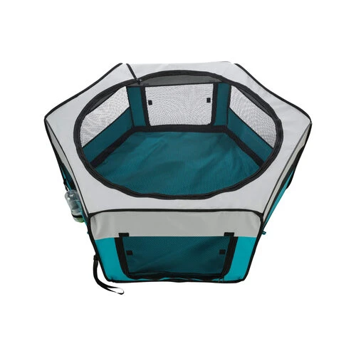 Dieser Freilauf kann drinnen oder draußen verwendet werden und hat einen abnehmbaren Boden. Er sich leicht zusammenlegen und aufstellen und wird auch mit einer praktischen Transporttasche geliefert. Das Oberteil ist abnehmbar und kann bei 30 Grad von Hand gewaschen werden. Dieser Auslauf ist auch sehr gut für Welpen geeignet.
